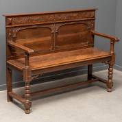 Eiken halbankje met gestoken decor van vazen en acanthusbladeren, Hollands, neorenaissance, 92 x 120 x 46 cm