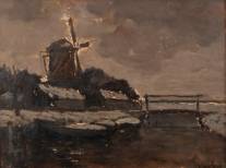 Marie Henri Mackenzie (1878-1961), 'Molen Aalsmeer', winterlandschap, olieverfschets op board, gesigneerd, verso getiteld in potlood, 28 x 38 cm