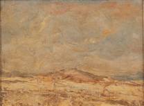 Marie Henri Mackenzie (1878-1961), 'Sneeuwjacht aan de Hoornboog', Hilversum, olieverf op paneel, niet gesigneerd, verso gedateerd 1938 en getiteld in potlood, 14,5 x 20 cm