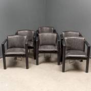 Zes zwart lederen armstoelen staand op verchroomd onderstel, model Cachucha, ontwerp Hugo de Ruiter, uitvoering Leolux, circa 1990, 74 x 61 x 66 cm