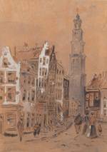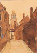 Marie Henri Mackenzie (1878-1961), de Jordaan met de Westerkerktoren, aquarel met potlood en gouache op papier, gesigneerd, 25 x 18 cm