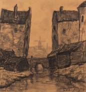 Marie Henri Mackenzie (1878-1961), 'Den Bosch', houtskool op papier, gesigneerd, 15 x 14 cm
