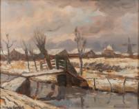 Marie Henri Mackenzie (1878-1961), winterlandschap met bruggetje, olieverf op board, gesigneerd, 36 x 46 cm