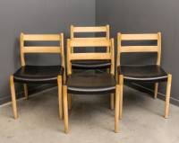 Vier eiken stoelen met zwart lederen zitting, model 84, ontwerp Niels Otto Møller, uitvoering J.L. Møllers Møbelfabrik, Denemarken, 79 x 50 x 52 cm