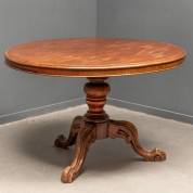 Ronde mahonie klaptafel op driespantpoot, 19e eeuw -slijtageplekken op het blad, gebruikssporen-, 76 x Ø 118 cm