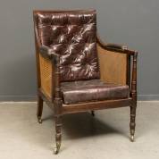 Mahonie bergère met lederen bekleding en rietbespanning, Engeland, regency, herkomst: Axel Vervoordt, Ref. 0699.083, juni 2003, 104 x 69 x 80 cm