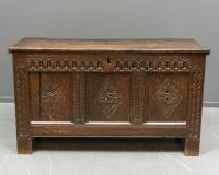 Eiken panelenkist met gestoken bloemdecor, Hollands, 18e eeuw -slot manco-, 73 x 128 x 55 cm