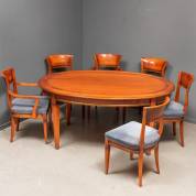 Ovale kersenhouten schuiftafel met zes bijbehorende stoelen, 78 x 170 x 120 cm
