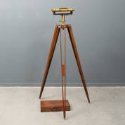 Messing en stalen landmeter op verstelbaar houten driepootstatief, adres: C. Becker, Arnhem, eerste helft 19e eeuw, inclusief mahonie kist voor landmeter, 147 x Ø 80 cm