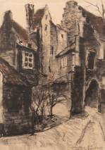 Marie Henri Mackenzie (1878-1961), 'Kuiperspoort Middelburg', houtskool en crayon op papier, gesigneerd en gedateerd 25.8.'36, 42 x 30 cm