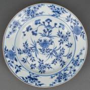 Diep Chinees porseleinen bord met blauw-wit bloemdecor, Yongzheng, Ø 22,5 cm