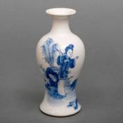 Chinees porseleinen balustervormig vaasje met blauw-wit langelijzendecor, gemerkt met dubbele ring, 19e eeuw, 14 cm