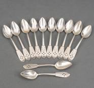 Twaalf 2e gehalte zilveren theelepels, gewicht 99 gram, 11 cm