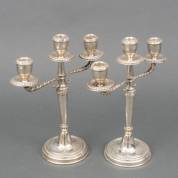 Paar 3e gehalte zilveren drielichts kandelaars, gewicht 800 gram, 28,5 x 25,5 x 11 cm