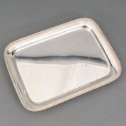 Rechthoekig 1e gehalte zilveren cabaret gedecoreerd met kabelrand, staand op vier bolpootjes, meester: George Reevers, Amsterdam, 1841, gewicht 601 gram, 3 x 29,75 x 22 cm