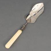 1e gehalte zilveren taartschep met gegraveerd rocailledecor en ivoren heft, gegraveerd: '21 October 1842', meester: Elise Henri de Haas, Amsterdam, 1842, brutogewicht 155 gram, 30,5 cm