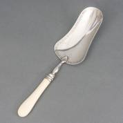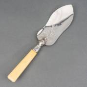 2e gehalte zilveren taartschep met gegraveerde meanderrand en ivoren greep, meester: J.M. van Kempen & Zonen, Voorschoten, 1876, brutogewicht 85 gram, 28,75 cm