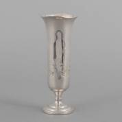 1e gehalte zilveren anjervaas, met geciseleerd bladdecor, meester: Walker & Hall, Sheffield, 1912, brutogewicht 325 gram, 21 x Ø 9 cm