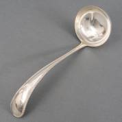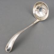 2e gehalte zilveren sauslepel, puntfilet, met opengewerkte steel, meester: Hendrik van der Wolk, Utrecht, 1816, 41 gram, 17,5 cm