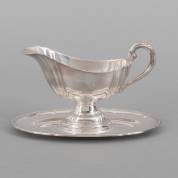 Paar 2e gehalte zilveren sauslepels, Haags lof, meester: Zilverfabriek Voorschoten, 1930, gewicht 119 gram, 15 cm