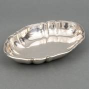 Ovale 2e gehalte zilveren gelobde dienschaal met gecontourneerde rand, Duitsland, 20e eeuw, gewicht 400 gram, 4,5 x 31 x 21 cm