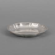 Ronde 2e gehalte zilveren gelobde schaal, meester: M.H. Wilkens & Söhne, Bremen, circa 1950, gewicht 149 gram, Ø 20 x 3 cm