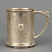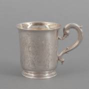 1e gehalte zilveren beker, centraal gegraveerd monogram 'JGAC' omgeven door rocailledecor, vermeil binnenzijde, meester: Edward en John Barnard, Londen, 1853, gewicht 145 gram, 9 x 11 x 8 cm