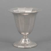 1e gehalte zilveren gefacetteerde bokaal met lepelhoudertje, meester: Koninklijke Van Kempen & Begeer, Zeist, 1966, brutogewicht 216 gram, 12 x Ø 11,5 cm