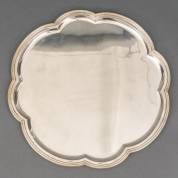Gelobd 2e gehalte zilveren dienblad met geprofileerde rand, meester: J.M. van Kempen & Zonen, Voorschoten, 1919, gewicht 595 gram, Ø 29,75 cm
