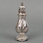 1e gehalte zilveren strooier, getordeerd model met bloemgedecoreerde knop, gewicht 279 gram, 20 cm