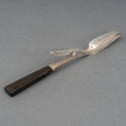 2e gehalte zilveren dientang, dubbelfilet, met zwart houten greep, meester: George Bennewitz & Anthony Knottenbelt, Amsterdam, 1837, brutogewicht 195 gram -greep zit iets los-, 5 x 32 x 2,5 cm