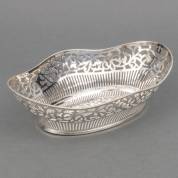 1e gehalte zilveren ajourgezaagde broodmand met parelrand, winkeliersmerk: Koninklijke Van Kempen & Begeer, Voorschoten, circa 1970, gewicht 441 gram, 9 x 31 x 20 cm