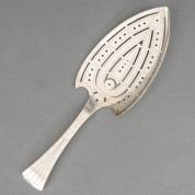2e gehalte zilveren visschep met ajourgezaagd en gegraveerd zeewezendecor, meester: J.M. van Kempen & Zonen, Voorschoten, 1890, gewicht 106 gram, 27,5 cm