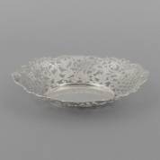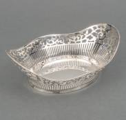 2e gehalte zilveren broodmand met ajourgezaagd decor van bloemen en rocailles, 1942, gewicht 411 gram, 6,5 x 30 x 25 cm