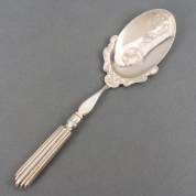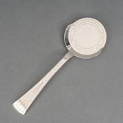 2e gehalte zilveren schep met gegraveerd decor en gecanneleerd heft, gemonogrammeerd: 'G.H.', meester: Franciscus Jacobus de Leeuw, 's-Hertogenbosch, 1872, gewicht 60 gram -defect rand-, 26 cm