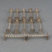 Twaalf 2e gehalte zilveren getordeerde messenleggers, met gestileerde letter M, meester: H.M. Mansvelt, Rotterdam, 1913, gewicht 372 gram, 3 x 8,75 x 3,5 cm