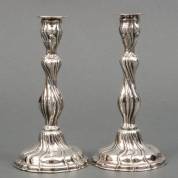 Paar getordeerde 2e gehalte zilveren kandelaren, Duitsland, 20e eeuw, brutogewicht 638 gram, 19 cm
