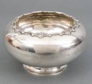 2e gehalte zilveren jardinière met bloem- en voluutgedecoreerde rand, op standring, meester: Wang Hing & Co, Hong Kong, circa 1900, gewicht 597 gram -deuken-, 10,5 x Ø 18 cm