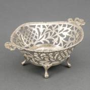 2e gehalte zilveren bonbonmandje met strikken, parelrand, meester: J.Ph. de Vries, Hoorn, 1917, gewicht 83 gram, 5 x 14 x 9,5 cm