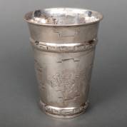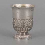 3e gehalte zilveren bekertje met gedreven palmetdecor, meester: Rieberg, Kassel, Duitsland, begin 19e eeuw, gewicht 152 gram, 10 x Ø 8 cm