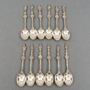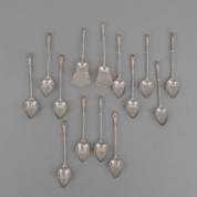 Twaalf 2e gehalte zilveren apostellepeltjes, gewicht 174 gram, 12 cm