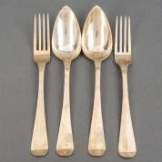 Twee 2e gehalte zilveren tafelcouverts, Hollands glad, gemonogrammeerd: 'R', meester: Johannes Hendrikus Tarner, Amsterdam, 1862, gewicht 267 gram, 22 cm