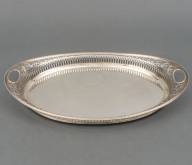 Ovaal 1e gehalte zilveren dienblad met ajourgezaagde rand, meester: Firma A. Bonebakker & Zoon, Amsterdam, 1917, gewicht 1416 gram, 5,5 x 48 x 30,75 cm
