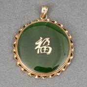 BWGG hanger, gekeurd 8kt, bezet met jade en plaque met Chinees teken voor welvaart, brutogewicht 6,1 gram, Ø 3 cm