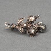 14kt gouden bloembroche bezet met roosdiamant, in zilver gezet, brutogewicht 5,9 gram, 4 x 2 cm