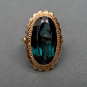 14kt gouden ring, bezet met ovaal gefacetteerde synthetische toermalijn, mt. 18, brutogewicht 7,2 gram