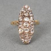 14kt gouden markiesring, rijkelijk bezet met roosdiamant, mt. 17,75, brutogewicht 3,7 gram