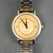 Titanium en verguld damespolshorloge Omega De Ville, quartz uurwerk, goudkleurige wijzerplaat met datumaanduiding, aan titaniumschakelband, 2,75 cm
