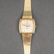 14kt gouden damespolshorloge Eterna-Matic, automaat, carrévormige kast aan 14kt gouden Milanese band, brutogewicht 44,6 gram, 2 x 2,25 cm