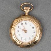 Damesremontoir in 14kt gouden kast, brutogewicht 19,0 gram -oogje missend-, Ø 2,75 cm